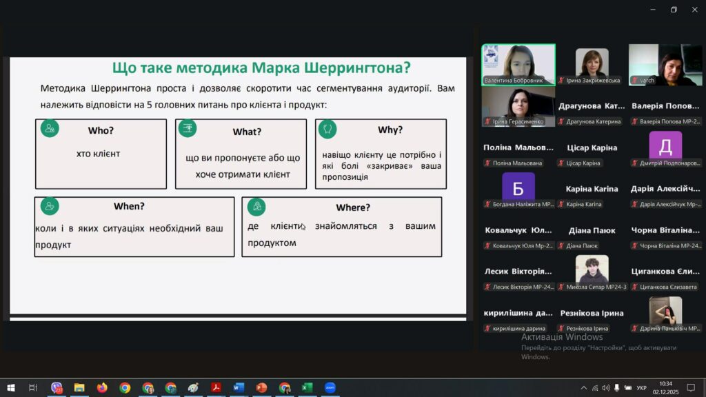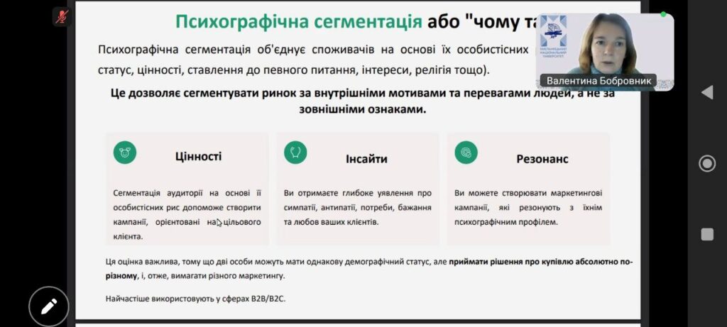 ✔Під час зустрічі спікери детально охарактеризували провідні напрями сучасного маркетингу (Brand-, Performance- та Retention-маркетинг), розкрили особливості сегментації ринку та зосередили увагу на ключових критеріях виділення цільових сегментів – географічних, демографічних, психографічних і поведінкових. Окрім цього, викладачі представили актуальні інструменти визначення цільового ринку, зокрема модель 5W Марка Шеррингтона та RFM-аналіз, а також обговорили показники оцінювання сегментів, стратегії охоплення ринку й елементи позиціювання, що забезпечують формування конкурентних переваг.