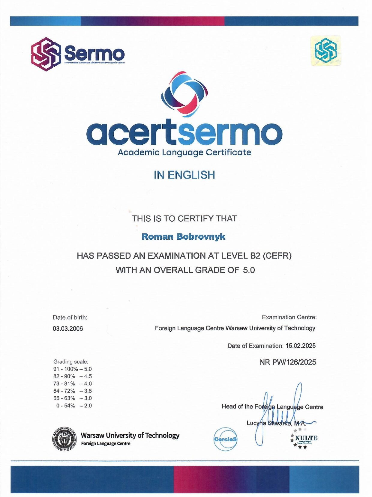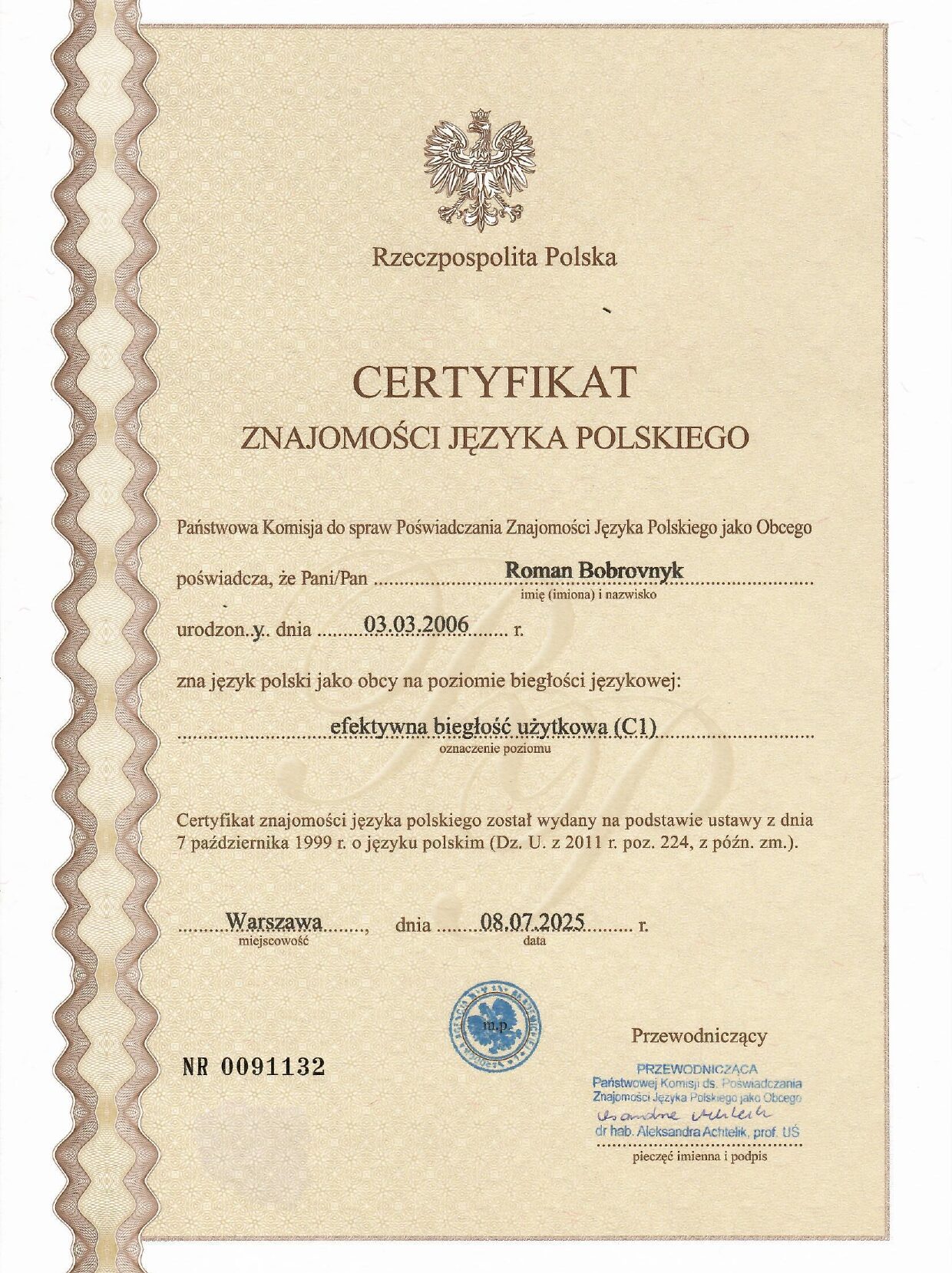 ✔Ділимося ще одним важливим особистим досягненням. Роман Бобровник (МР-23-2) успішно склав іспити з польської мови – рівень C1 та англійської мови – рівень B2. Цей успіх наочно демонструє, що знання іноземних мов є реальним інструментом розширення академічних і професійних можливостей студентів маркетологів (https://mr.khmnu.edu.ua/movni-dosyagnennya-studentiv-marketologiv/).