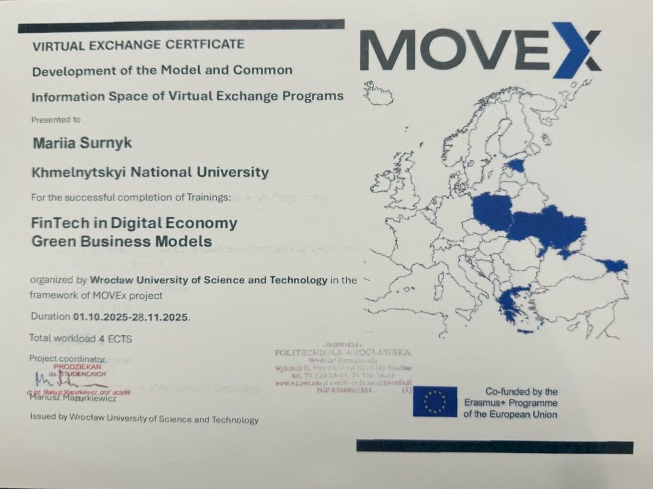 ✔Успішне завершення програми віртуальних академічних обмінів у межах міжнародного проєкту Erasmus+ MOVEx ще раз підтвердило активну інтеграцію ХНУ загалом та студентів маркетологів, зокрема у міжнародний освітній простір та конкурентоспроможність наших студентів. Марія Сурник (МР-24-3) успішно опанувала програму та продемонструвала високий рівень академічної мобільності (https://mr.khmnu.edu.ua/uchast-mariyi-surnyk-u-programi-virtualnyh-obminiv-v-ramkah-proyektu-erasmus-movex/).
