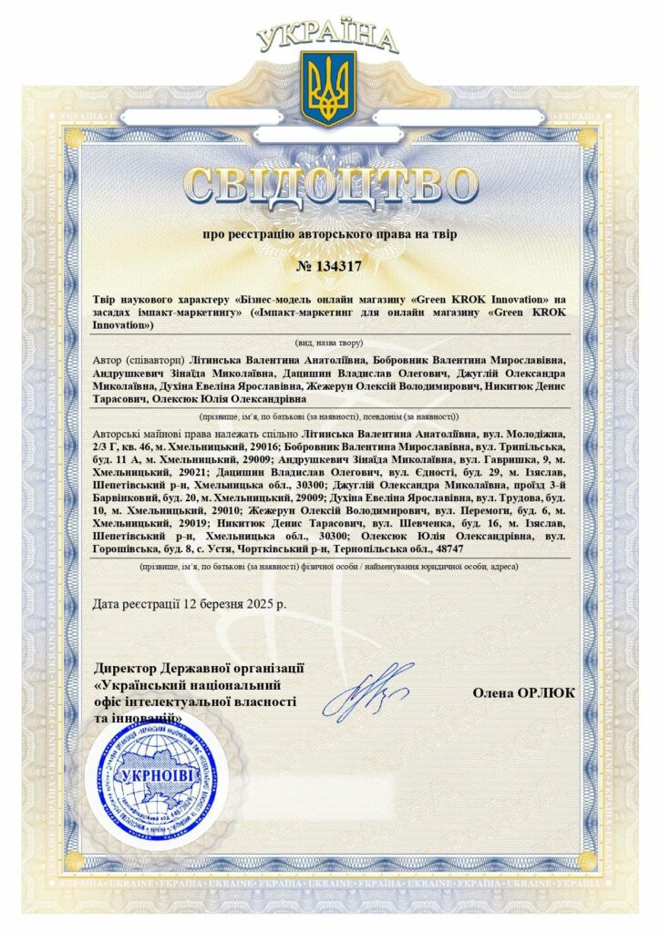 ✔Отримали авторське право. Тепер Green KROK Innovation – офіційно наш.