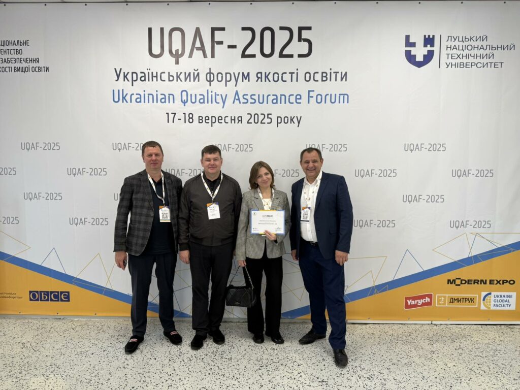 17-18 вересня 2025 року на базі Луцького національного технічного університету віідбувся Український форум якості освіти UQAF-2025, Ukrainian Quality Assurance Forum. Кафедра маркетингу Хмельницького національного університету взяла участь у міжнародному форумі UQAF-2025, що об’єднав провідних експертів у сфері якості освіти. Участь у заході дозволила доцентам кафедри, Ірині Закрижевській, Віалію Карпенку, Віталію Нянько ознайомитися з сучасними європейськими тенденціями, обмінятися досвідом та налагодити професійні контакти.