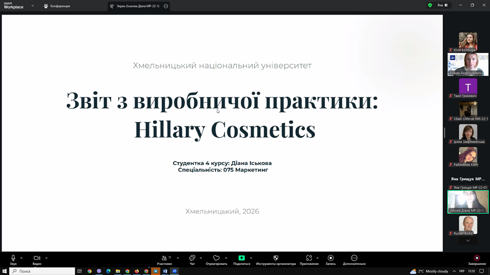 ▪У період з 19 січня 2026 року по 08 лютого 2026 року здобувачі вищої освіти спеціальності «Маркетинг» Хмельницького національного університету проходили виробничу практику на базі підприємств-партнерів кафедри.